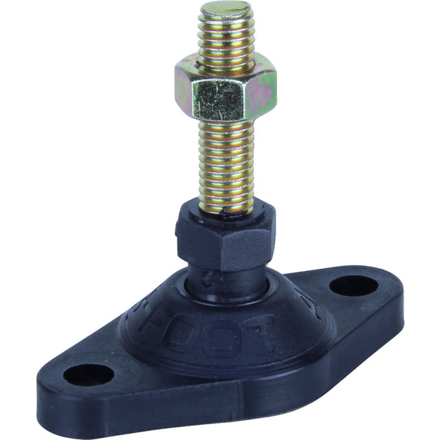 Bolt Down adjustable/levelling foot with ball joint and fitted with non-slip insert in base. Thread and nut are zinc plated steel.