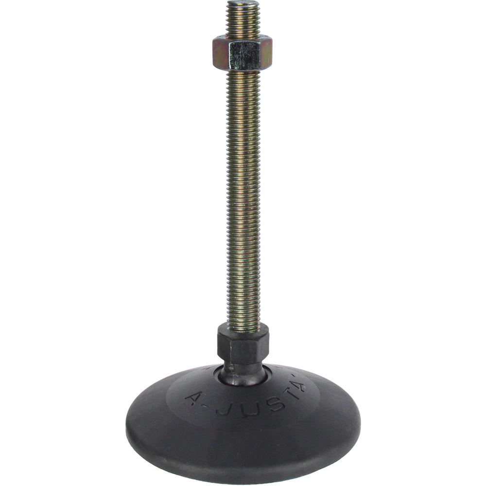 Adjustable/Levelling foot with ball joint and fitted with non-slip insert in base. Thread and nut are zinc plated steel.