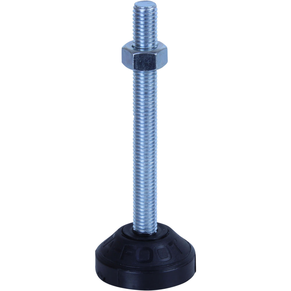 Fixed adjustable/levelling foot fitted with non-slip insert in base. Thread and nut are zinc plated steel.
