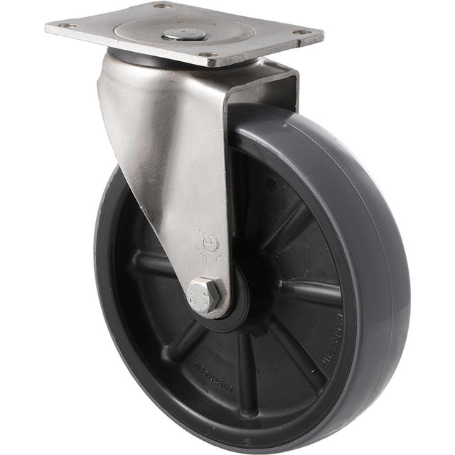 HUS200/OSP - 450 Kg Stainless Steel Swivel Plate 200mm Polyurethane is backordered and will ship as soon as it is back in stock.