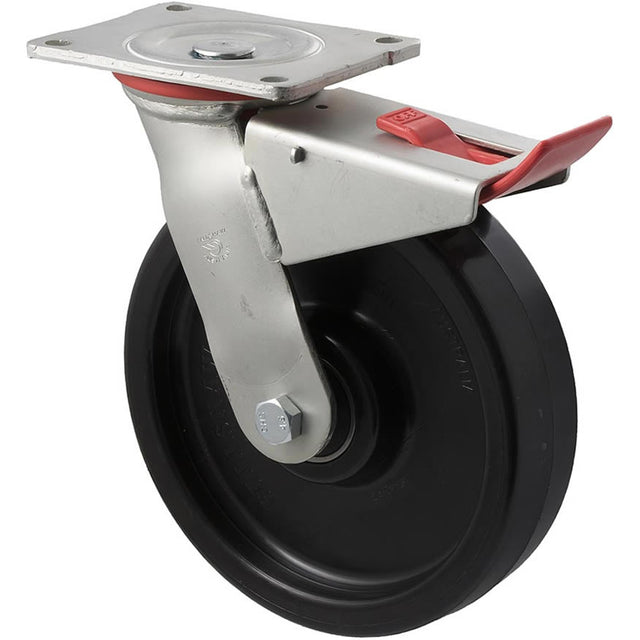 WNQ200/HZPTB - H SERIES 600 Kg Swivel Plate Total Brake 200mm Black Nylon - ISO is backordered and will ship as soon as it is back in stock.