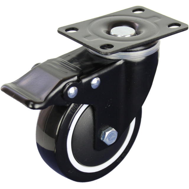 BPUQ100STB - 140 Kg Swivel Plate Total Brake 100mm Polyurethane
