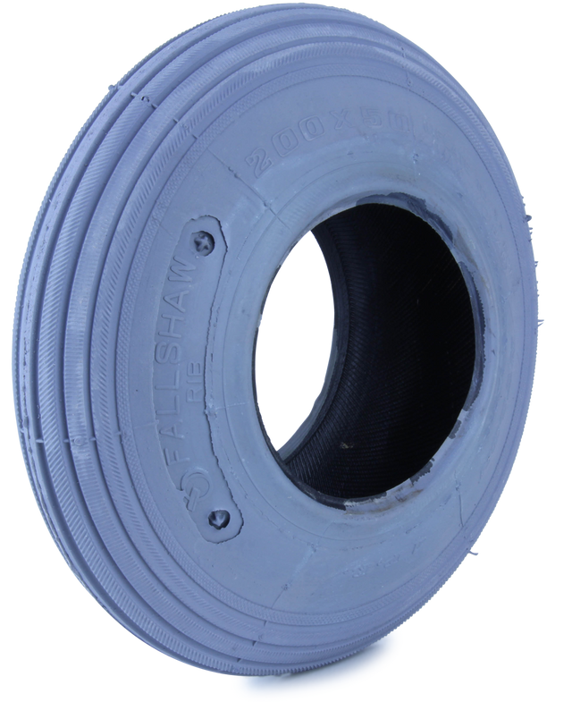 Non-marking tyre often fitted to equipment used indoors. Wheelchairs and walkers are common uses.