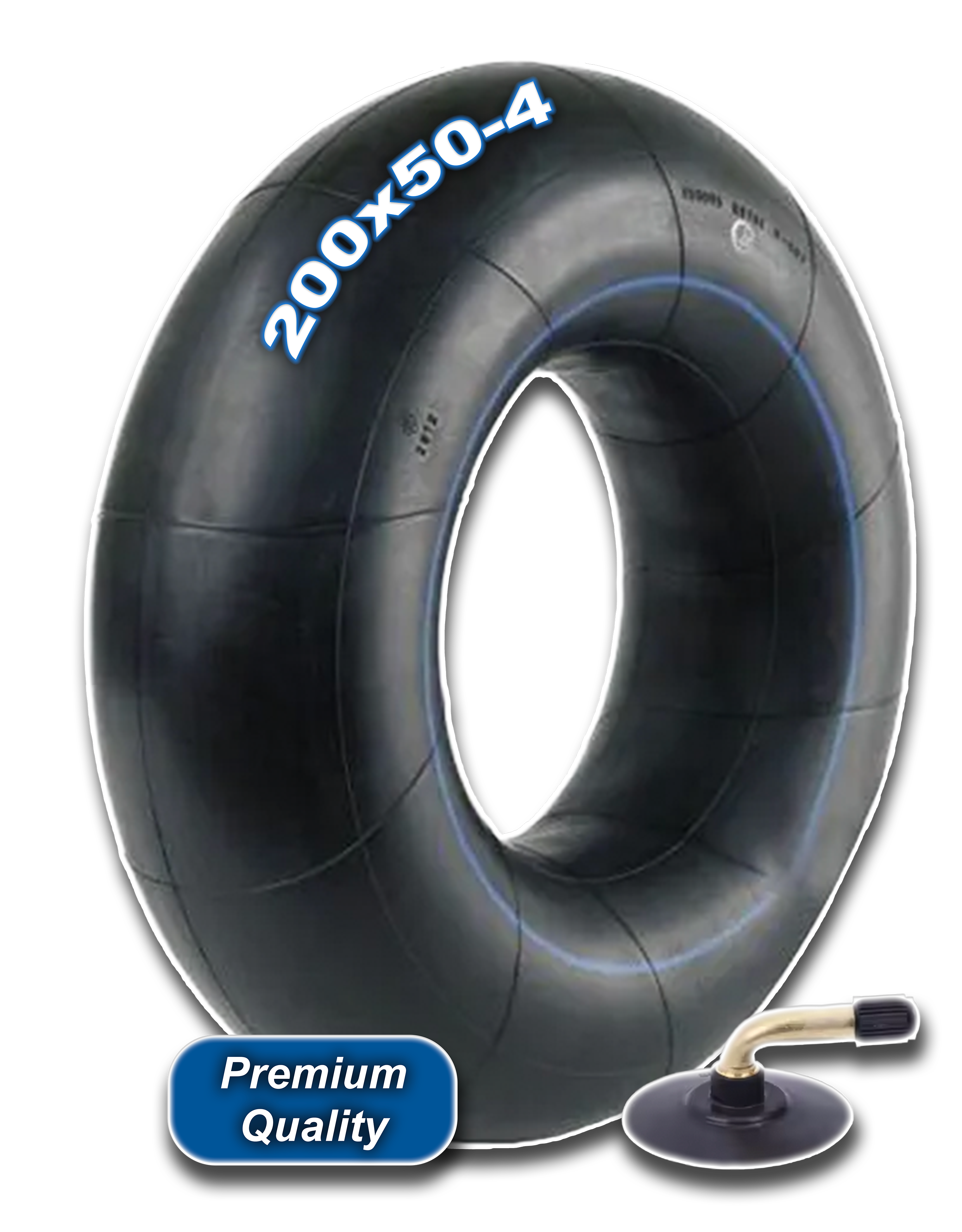 Heavy duty inner tube with a rigid, bent valve stem, built to resist punctures and hold air for longer. Common, premium replacement for mobility products, scooters etc.Suits 200x50 tyres.