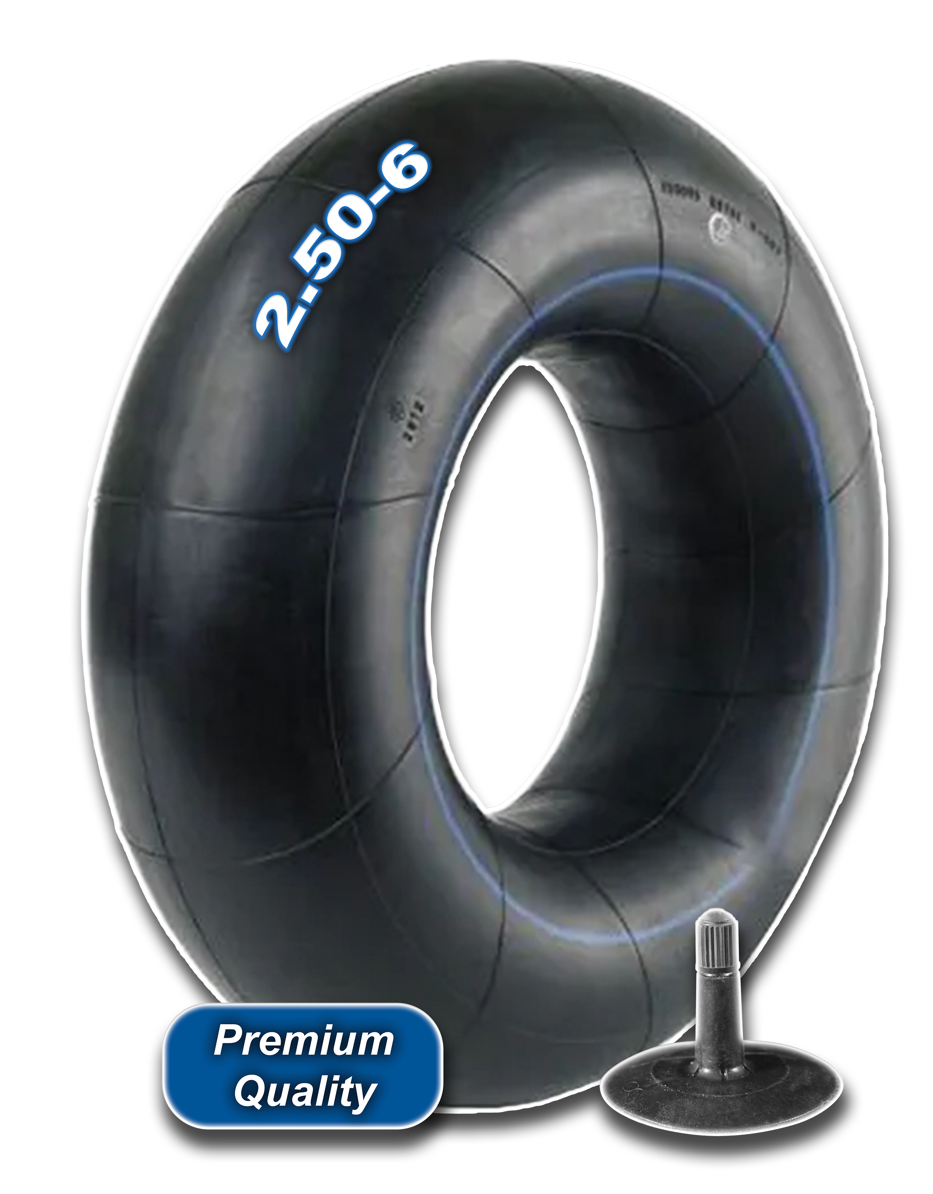 Heavy duty inner tube with a rigid, straight valve stem, built to resist punctures and hold air for longer. Premium replacement for 2.50-6 tyres.