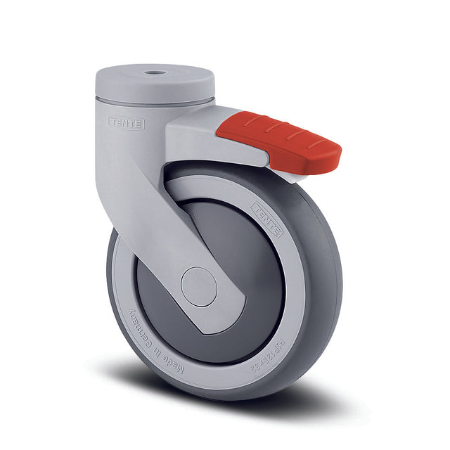 The TENTE 5377PJP100P30RW is a premium swivel/braked castor from the Levina series, designed for light- to medium-duty applications where quiet, smooth movement and floor protection are essential. Its Supratech wheel and synthetic housing provide shock absorbance and noise reduction, making it ideal for medical equipment, trolleys, and any environment where quiet operation is required.