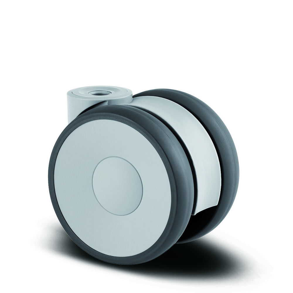 With 2 × 100 mm diameter, 25 mm wide wheels, this twin-wheel castor provides outstanding manoeuvrability and stable load distribution, even in demanding environments. It supports 100 kg dynamic and 200 kg static loads, and performs reliably across a wide temperature range of –20 °C to +70 °C.