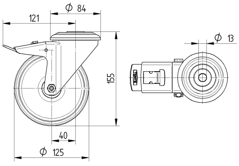 - Wheel Diameter X Tread Width: 125 x 40mm