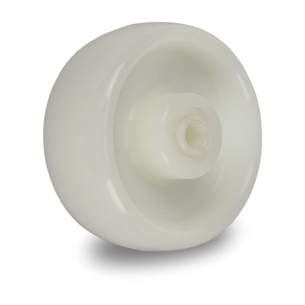 Medium duty white nylon wheel only - plain bore. Supplied with nylon spacer sleeve to 8mm inner bore.