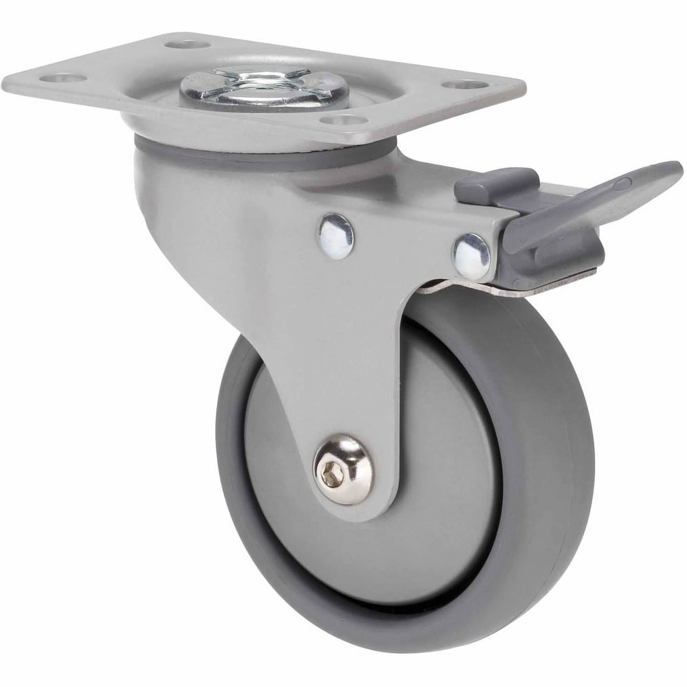 Light industrial decorative grey TPE powder coated castor fitted with coloured thread guards. General use in lighter applications including display stands, furniture, shop fitting and medical equipment.