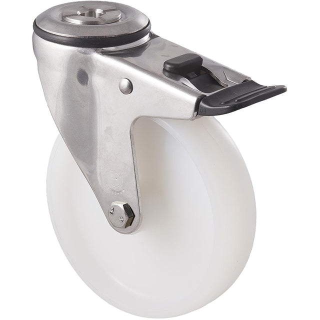 MNN125WS/MSHTB 150 Kg Stainless Steel Bolt-Hole Total Brake 125mm White Nylon